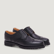 Wiener Variante des Full Brogue mit Derby-Schnitt. Rahmengenäht aus klassischem Scotch Grain Leder auf Salzburger Leisten in F-Weite auf ultra-leichter Profilsohle in Schwarz.