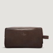 Dieses schlichte Necessaire aus Pferdeleder (Horse Fronts) verfügt über 2 Innenfächer und einem Tragegriff. Das Innenleben ist mit schwarzem, wasserfestem Nylon versehen.