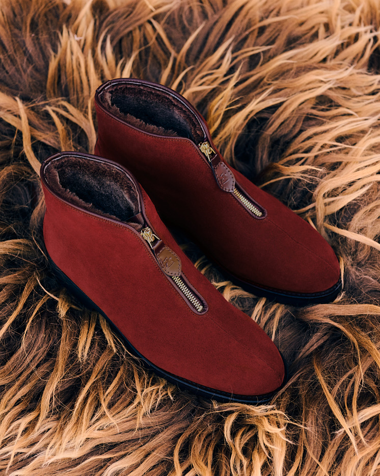 Schaft poliertem Bookbinder Calf Leder und geschmeidigem Velours verleiht er selbst den eisigsten Anlässen alpinen Schick. Wenn Sie also Après-Ski der Warteschlange am Lift vorziehen, haben Sie jetzt die perfekte Ausrede.
