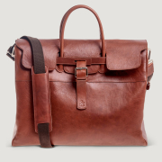 Casual leather bag made of horse fronts with leather clasp and chrome plated metal buckle, zipped compartment inside, two additional inside and outside compartments, removable and adjustable shoulder strap with steel carbines.