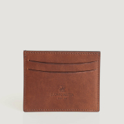 Small case for credit or business cards made of horse-back leather, two pockets on each side and one extra pocket in the middle.