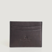 Small case for credit or business cards made of horse-back leather, two pockets on each side and one extra pocket in the middle.