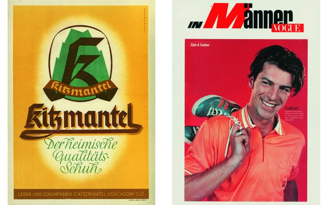 C. Kitzmantel Factory logo; Cover of German Men's Vogue with the shoemodell 'Trainer'.