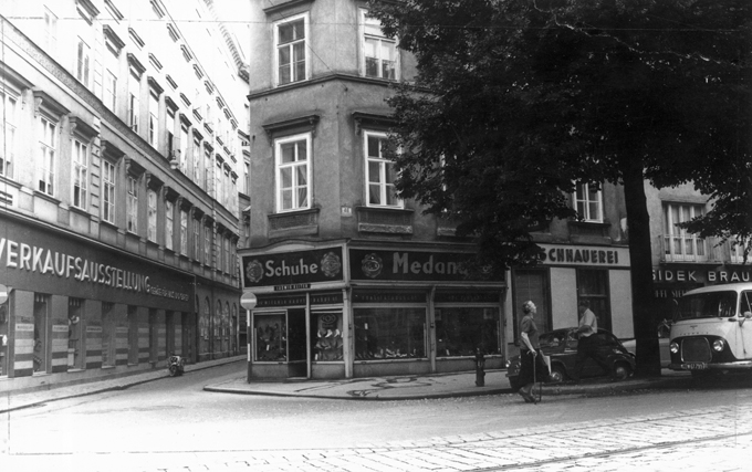 Anna Reiter (middle) wife of the company founder in front of the store on Wiedener Hauptstrasse.