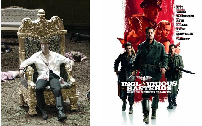 Tobias Moretti In 'König Ottokars Glück und Ende' at the Vienna Burgtheater, Brad Pitt and fellow actors in 'Inglorious Basterds'.