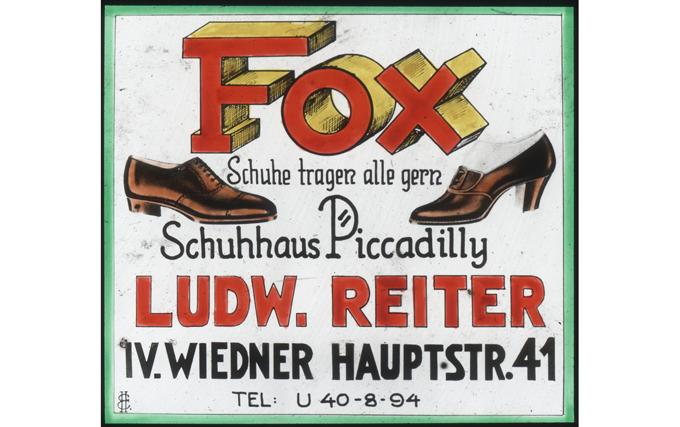 Sign of the brand 'Fox'in the shoe store „Piccadilly“, on Wiedner Hauptstraße.