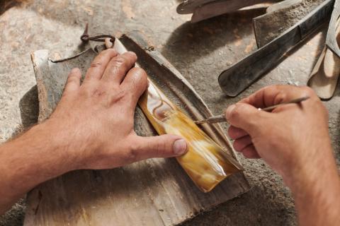 The most well-known item made from horn is the traditional horn comb, then as now a valued product and namesake of the entire branch of craft. Centuries ago, the horn comb maker's guild was widespread. The ever-increasing industrialization made it increasingly difficult for small craft businesses to keep up. After the Second World War, there were only around 80 comb makers left in Austria. Friedrich Petz was the last horn chamber maker in Austria to receive his master's certificate in 1951. Despite the difficult times and the trend towards plastic products, the Petz couple successfully led the business through all adversities.