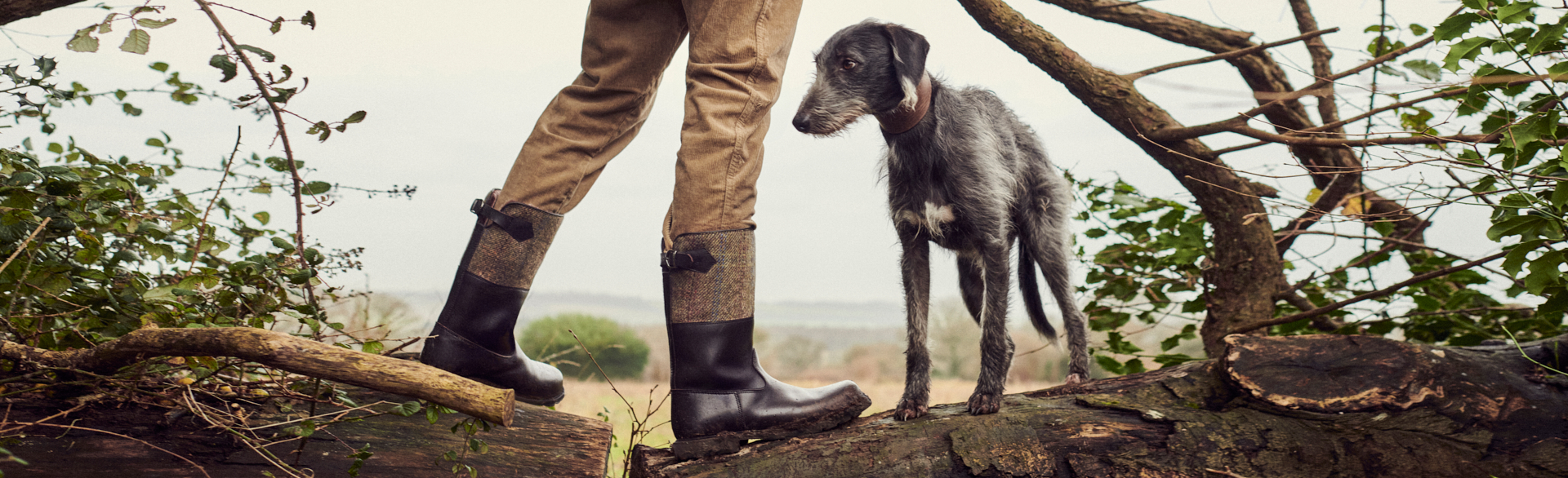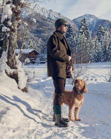 The upper shaft is made of suede, wool felt, or tweed. For heavy soiling, allow the material to dry and then brush it off. Water resistance can be improved with an impregnating spray. Wool felt is naturally very weather-resistant but, like tweed, should be protected from moths when stored. Pony hair may develop bald spots due to abrasion, particularly on the inner sides.