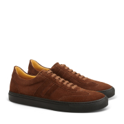 Comfortable and casual sport shoes made of buttery soft suede leather with a low-top silhouette on boat soles in brown.