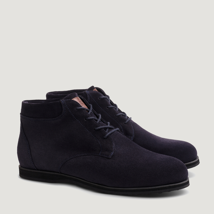 This casual, ankle-high leisure shoe was crafted from supple suede leather with shearling lining and a seamless vamp. The non-slip knobbed sole ensures a better grip.