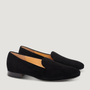 Simple, elegant goat suede leather loafer with a minimalist silhouette with round toes and leather soles with skid-proof rubber top.