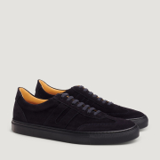 Comfortable and casual sport shoes made of buttery soft suede leather with a low-top silhouette on boat soles in navy.