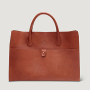 Minimal uni-sex bag made of premium bark-tanned leather from the tanneries Degermann. Unlined with a large compartment with metal zipp on the inside as well as large compartment with pressure closure on the outside.